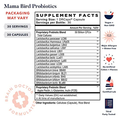 - BRAIN-BOOSTING, SCIENCE-BACKED NUTRITION: Powerful 50 billion+ CFUs with the multi-strain benefits of 15 different probiotic strains to promote a healthy immune system and lasting, natural energy. Supports the care of your gut—the “second brain”—by promoting better digestion and healthy regularity. These probiotic supplements for women support immunity and helps make the feel-good neurotransmitter serotonin. Promotes healthy blood glucose levels during pregnancy.