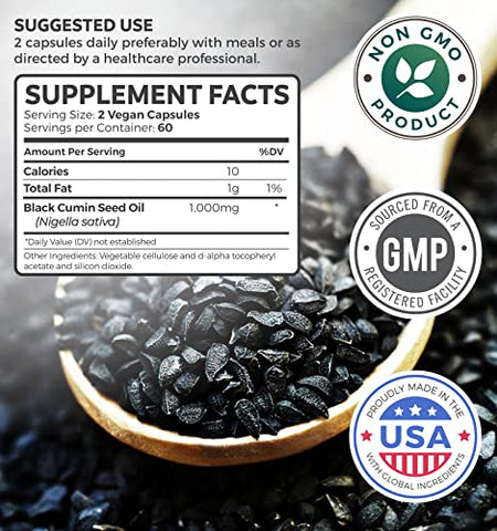 • Manufactured to immaculate standards: We manufacture these vegan, non-GMO softgels in a GMP-certified facility right here in the USA. The two piece capsules are filled with our precision formula in the presence of pure nitrogen, to keep oxygen out and ensure your black seed oil remains pure and unspoiled.