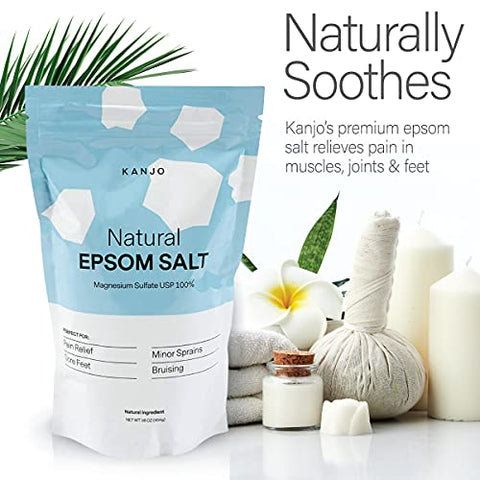 Details: Take some time to relax! Made with only 100% USP grade Magnesium Sulfate, Kanjo Natural Epsom Salt provides a premium quality soaking bath salt to naturally alleviate aches and pains and take the stress out of your day. Take some time to relax and soak in a nice, hot Epsom Salt bath to soothe sore muscles, aching feet, and reduce swelling throughout the body. Relieve pain naturally Magnesium is known for its natural muscle recovery benefits like relieving tension and relaxing muscles. While soaking in Kanjo Epsom Salt, you’ll notice your body naturally relaxing and feel immediate relief from pain and sore muscles. After a long day at work or a hard workout, Epsom Salt is a great, natural remedy for those aching muscles and tired feet. Epsom Salt can also soften dry skin, making it perfect for foot soaks. Kanjo Natural Epsom Salt quickly and easily dissolves in hot water and after just a few minutes of soaking, you can experience the physical and therapeutic benefits of pure Magnesium Sulfate. About Kanjo Kanjo is dedicated to providing the highest quality health products for pain relief and relaxation that you can implement in the comfort of your home. Make sure to look for our popular acupressure products also available on Amazon.